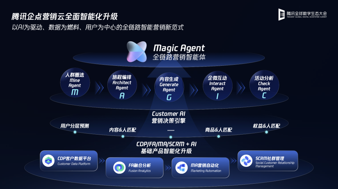 腾讯企点营销云,交卷AI营销增长发表时间:2025-09-22 17:09 ![]() 不论是传统包括CDP、MA、FA等产品的AI化升级,还是Customer AI,抑或者是Magic Agent全链路营销智能体,更可以理解为,这些被腾讯企点营销云给出的答卷都是从真实的实践中长出来的产品和AI思想,这其中不仅有足够先进且适配零售行业的模型算法、知识库等技术理念,更被封装的还有一个个真实人货场体系的产业AI know-how。 这张新营销答卷背后的产品哲学在于,只有基于 “技术+工程+场景”的AI共生模式,零售企业才能构建真正适配的专属AI模型,交卷确定性增长。 作者|皮爷 出品|产业家 2025年下半年,谌鹏飞被《哈佛商业评论》杂志赋予了一个特别的称号:中国上市公司首个【数字增长官】。他的花名为“船长”,因此也被人叫做“AI-CGO船长”。 就在这个称号给出的前不久,作为绝味鸭脖的CIO,他带领团队小伙伴搭建了“AI会员多智能体”产品,把绝味集团超过8500万的会员在AI的加持下进行更为精准和智能的体系化运营。一个被粗略给出的数据是,相较于人工运营,AI的经营业绩结果可以达到3.1倍。 过去的几年时间里,AI成了包括他在内的几乎中国所有零售企业CIO的绝对主线。但这种新主线在浮现的同时,也伴随着一些更新的问题,即在AI FOMO的情绪之下,AI到底应该发挥的价值是什么?又或者说,应该怎样把AI和人货场分布复杂的零售场景进行更深的融合打通? 谌鹏飞并不是一个人在战斗。过去几年时间里,和谌鹏飞一起出现在一系列AI最前线的,除了绝味集团的小伙伴外,还有另一个群体,他们就是腾讯企点营销云。 作为腾讯内部持续深耕营销场景的产品,过去多年时间里腾讯企点营销云以CDP/MA等一系列成熟的营销组件产品被外界和零售企业所熟知,但面对汹涌澎湃的AI浪潮,上述这些也更是他们内部思考的问题。 帆船早已下水。绝味集团的AI会员多智能体产品正是双方在过去几年时间里共创的产品之一,不仅绝味,在一年一度的腾讯全球生态大会现场,一系列包括太平鸟、DFI零售集团、欣贺集团等零售企业也更在分享着过去两年大家真实的AI共创成绩。 如果说,AI在零售企业内的终极答案是什么?一个毋庸置疑的答案会是增长。一切为增长结果负责,一切为增长业绩负责。 在生成式AI爆发的第3年,腾讯企点营销云和他的伙伴们,正在给出这个答案。 一、企点营销智能体, 再进一步 5月的上海,零售圈被一个新消息搅动,一款名为“企点营销云智能体”的产品开始被众多零售企业CIO关注,它的核心产品形态是可以基于AI帮助企业自动化完成人群提取、画像分析、商品优选、营销内容生产、活动复盘等多项任务。 这是腾讯企点营销智能体的第一次亮相。 “其实在这个时间更往前,今年春节开始我们就开始了和绝味的共创,4月份是在几个关键的业务环节往实践更深的场景做,5月份我们把这些实践抽象成产品,做了预发布。”腾讯企点营销云产品负责人曾炜告诉产业家。 “但在这次预发布之后,我们又重新回到了绝味内部,开始了新一轮的共创,保持双周一个迭代版本,在和绝味真实的营销活动实战中验证打磨产品的效果。” 这一系列从绝味等零售企业内部真实场景实践“长出来”的AI能力,被腾讯企点营销云在这次腾讯全球数字生态大会上正式放到台前。 ![]() 首先是基础产品层面的升级,在过去多年时间里,一系列包括客户数据平台(CDP)、营销自动化(MA)、社交客户关系管理(SCRM)和融合分析(FA)是无数零售人所熟知的工具,但这些工具专业性较高,如果想要将工具价值发挥到最大,对使用者的技术力和零售理解力往往有极高的要求。 而在腾讯企点营销云的最新设定里,基于AI,过去复杂的“技术操作”都可以被变为简单的“业务对话”,工具的价值门槛被大大降低。 比如在CDP中,新增的“智能分群”功能可以帮助运营人员从海量用户中快速圈选出目标人群,;在MA中,“辅助画布生成”则能显著简化复杂营销旅程的创建过程;再比如,基于FA的“画像报告解读”和“智能归因”功能,系统可以自动生成并解读营销效果报告,为团队提供清晰的洞察等等。 第二张答卷是“营销决策引擎(Customer AI),如果说上述升级对应的是零售企业身体各个配件的升级,那么Customer AI则是对零售企业大脑的AI化升级,其可以使企业跳出经验主义的不确定性,让AI成为出更强的增长引擎助力。 具体来看,基于Customer AI,企业可以实现“人、内容、商品、权益”的最优组合,比如可以进行智能的用户价值分层,预测用户的转化概率和流失风险,在此基础上,可以为不同人群精准匹配最合适的商品和权益,实现利益点的精准触达。 最后,利用AIGC技术,其可以根据用户的特征、商品和权益信息,自动化生成海量、多模态的个性化内容。 更可以理解为,基于Customer AI,企业可以更有的放矢地进行营销投入,通过AI的自我进化不断调优投入产出的比例,确保营销投入的增长可靠性。 第三张答卷则是被重磅放到舞台中心的Magic Agent,对其更准确的描述是它更等同于一个零售行业的最佳AI实践,通过5个专业Agent环节的串联,帮助企业完成端到端的营销结果增长。 其中,“人群圈选Agent”能高效锁定高价值人群,告别盲目投放;“旅程编排Agent”能自动化设计用户转化路径;“内容生成Agent”能基于多模态AI技术生成更更丰富的个性化内容;“企微互动Agent”能帮助跟进线索转化,提