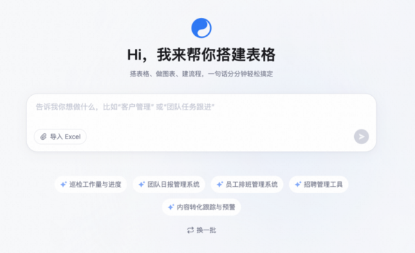AI钉钉1.0持续进化,AI表格助理今日全面上线发表时间:2025-09-23 14:56 一句话就能生成AI表格,包含数据表格、公式计算、自动化工作流和可视化数据看板,小白用户不用再担心不会做表格,也不用去求人开发软件了。9月23日,钉钉AI表格助理正式上线,所有用户在最新的AI表格中,点击“新建AI表格”或者表格页面上方的AI按钮即可使用。